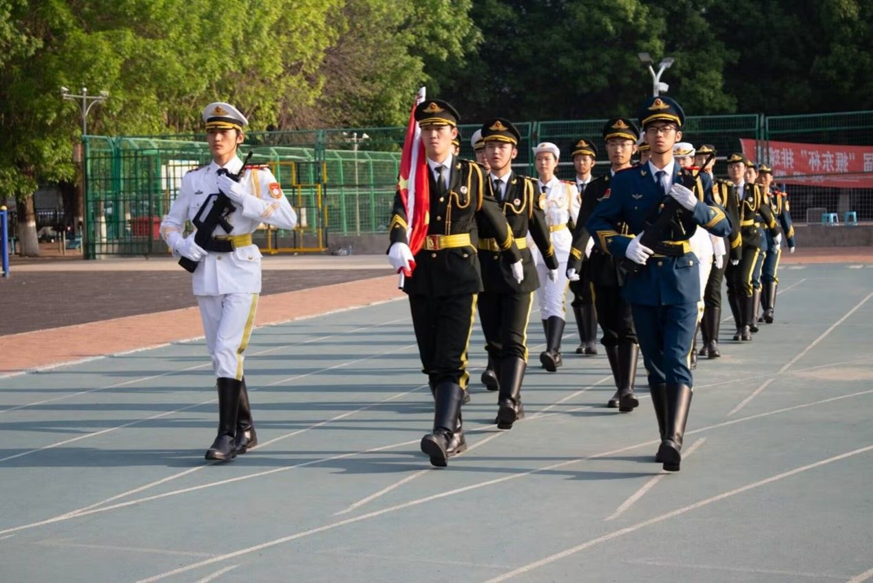 仪式在国歌声中开启。“汉卿”国旗护卫队迈着整齐有力的步伐护送国旗入场,全体师生庄严肃立,面向国旗行注目礼,激昂的国歌声响彻操场,爱国之情在每个人心中油然而生。